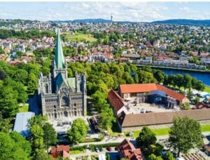 في الصباح, نبدأ جولتنا باستكشاف قلب تروندهايم، ثم ننطلق بمحاذاة الساحل النرويجي حيث المشاهد الخلابة للمضايق البحرية والبحر النرويجي. سنعبر أحد الفيوردات بالعبّارة وصولًا إلى كريستيانسوند، المدينة الساحلية المبنية على عدة جزر والمشهورة بجسورها وإطلالاتها الطبيعية الساحرة. وبعدها وقت حر للتجول وتناول الغداء.