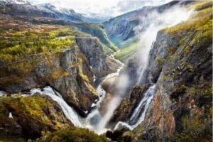 توقف في إيدفيورد، ثم زيارة شلال فورينغفوسن بارتفاع 182 مترًا، أحد أعظم شلالات النرويج، مع مسارات مشاهدة وجسور بانورامية.